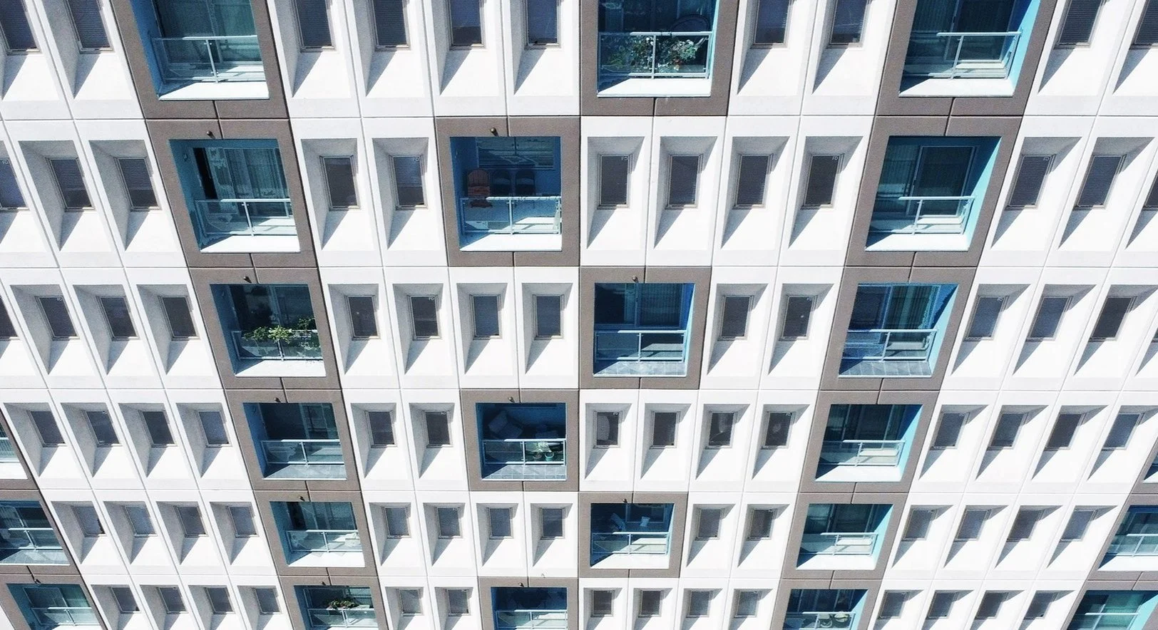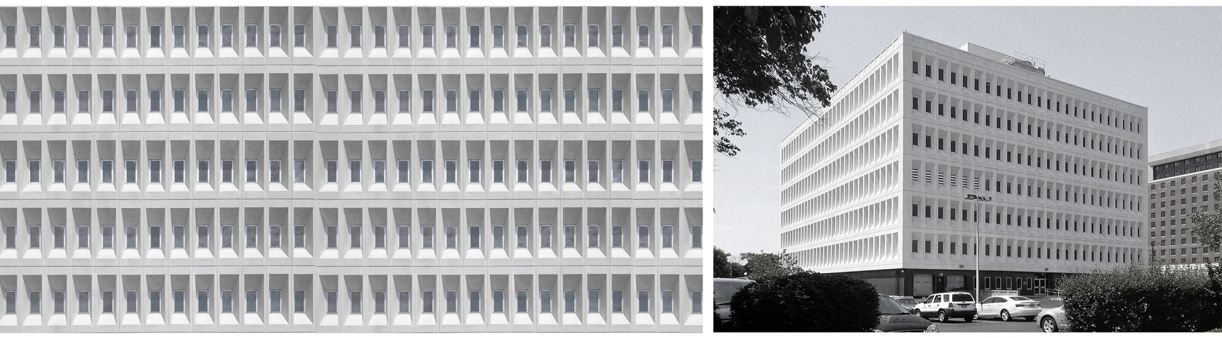 We revitalized the building's monolithic look by replacing concrete window panels with rhythmic balconies. These balconies not only enhanced the building's simple white facades but also introduced visual dynamism with varying depths and gradient colors, reflecting its new residential purpose.