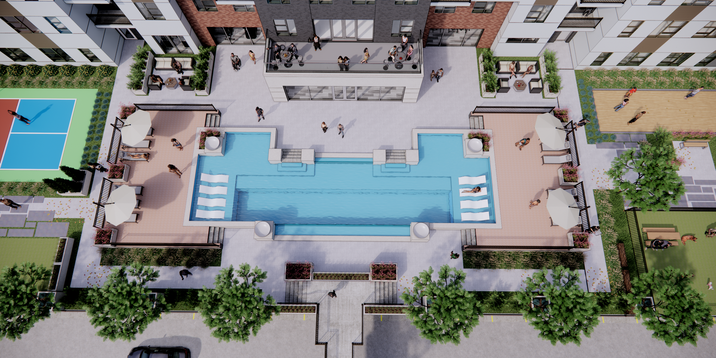 Midtown Plaza Apartments Phase 3&4 is a new multifamily construction project comprising 202 apartment units and 227 parking spaces. This project is located within the city block bordered by Washington St, W 34th St, Pennsylvania St., and W 34th Terrace. The project includes two buildings interconnected by a pedestrian bridge. The first building is a three-story structure fronting Pennsylvania St. At the same time, the second is a five-story building facing Washington St., including four levels of wood structure over a concrete podium parking garage. This phase 3&4 project is part of the Midtown Plaza Urban Redevelopment plan, which has phase 1 completed and fully occupied.