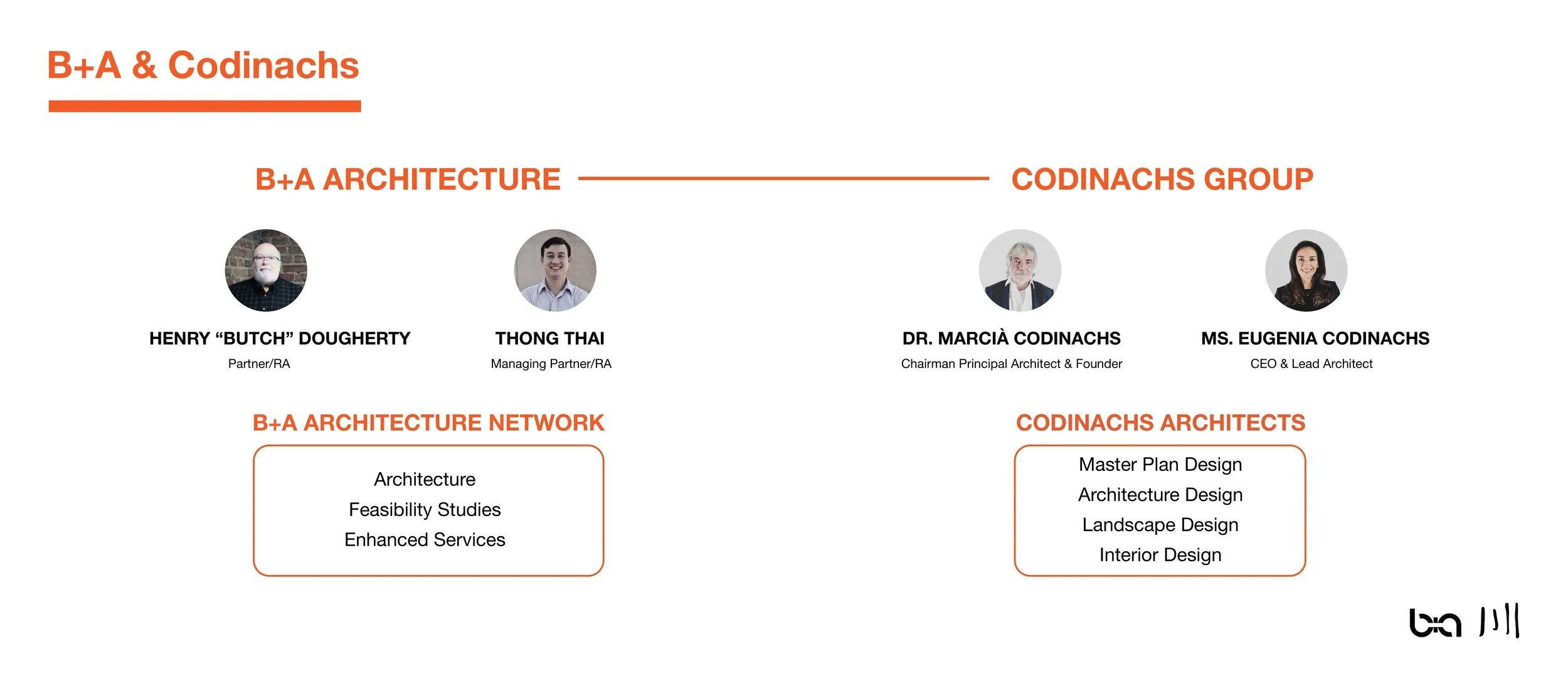 B+A Architecture, with a strong foothold in the US market, brings robust local connections and a proven track record of delivering outstanding architectural solutions. Our expertise in navigating the US market complements Codinachs’ international experience, creating a powerful synergy that will benefit our clients and stakeholders. This partnership enables them to offer a broader range of services and to tackle more ambitious projects. They are excited about the opportunities this collaboration presents and are confident that it will lead to exceptional outcomes for our clients.